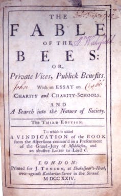 La vie sociale des abeilles libère l’imagination. L’écrivain romain Pline l’Ancien (23-79) admirait leur organisation en société politique avec ses chefs et ses conseils. Il les voyait même animées d’une morale. Près de 1 700 ans plus tard, à l’inverse, l’auteur Anglo-Néerlandais Bernard Mandeville décrit une ruche opulente habitée d’abeilles égoïstes où règne le vice. Elle périclitera lorsque la vertu leur sera imposée. Son ouvrage, La fable des abeilles, deviendra une référence de l’économie politique. Précurseur d’Adam Smith et de sa main invisible des intérêts personnels conduisant au bien commun, Mandeville veut prouver que l’égoïsme est productif, contrairement à l’altruisme. Adversaire de la frugalité (le voleur de la richesse d’un avare la fera ruisseler), il inspirera John Maynard Keynes dans sa dénonciation de l’épargne excessive.